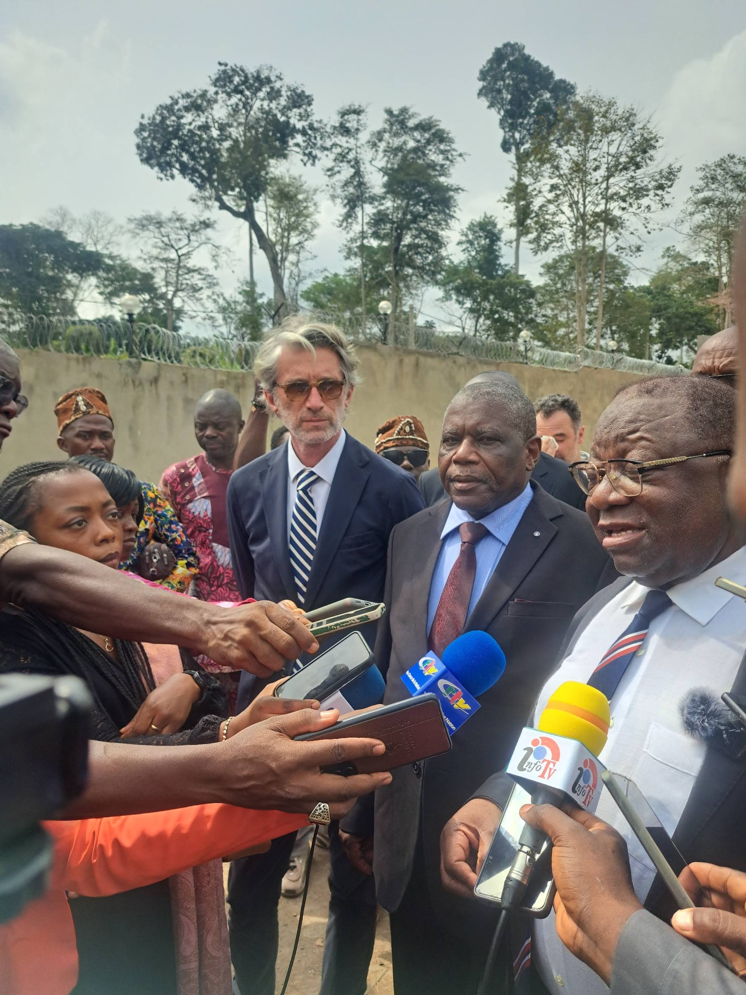C’était dans le cadre d’ une mise mission d’ évaluation de l’état d’avancement des travaux de construction de l’entreprise française SAS MANTA sous la conduite de son promoteur Olivier Bordais et de la présidente de la société coopérative « Cacao-Scoops.ca de Nkoaekogo » Mme Aristide Tchemtchoua. La cérémonie officielle de lancement des travaux de construction de cette unité de transformation de la fève dont le coût de construction est évalué à près de 40 milliards de F CFA s’était déroulée en juin 2024 présidée par le ministre du commerce.